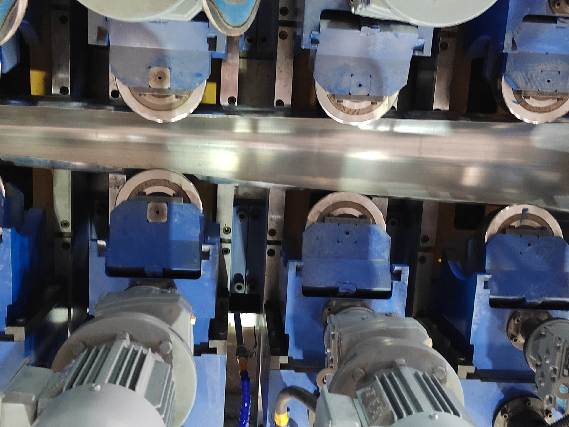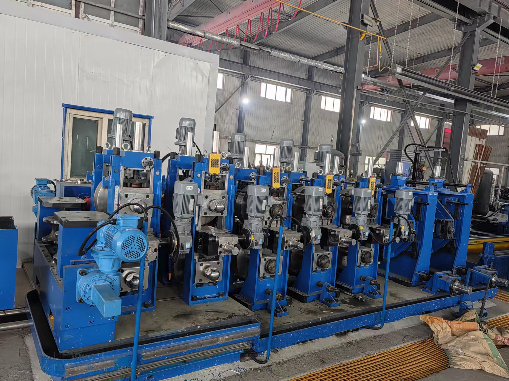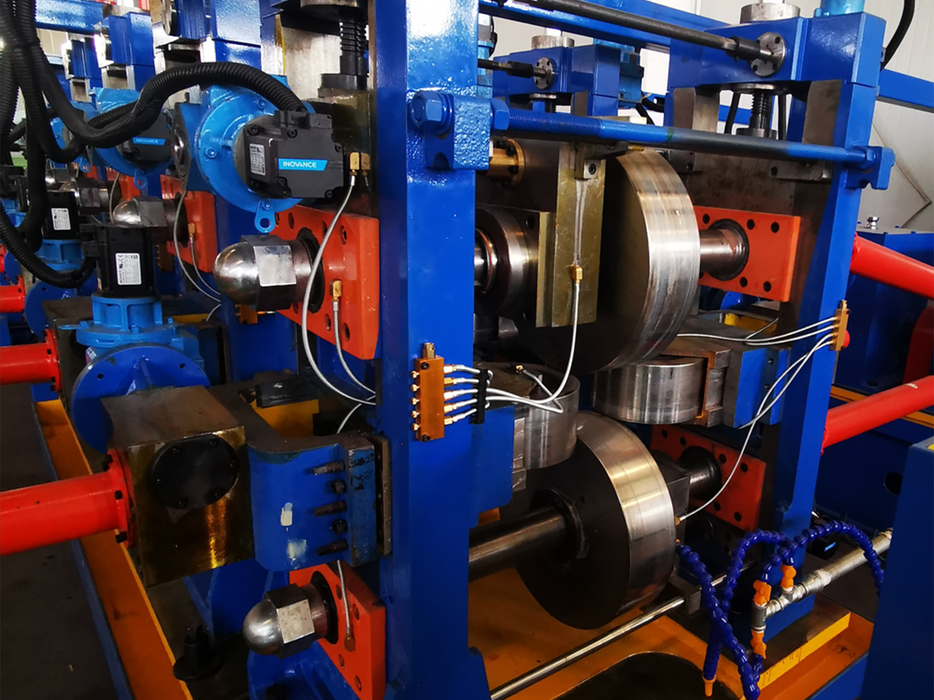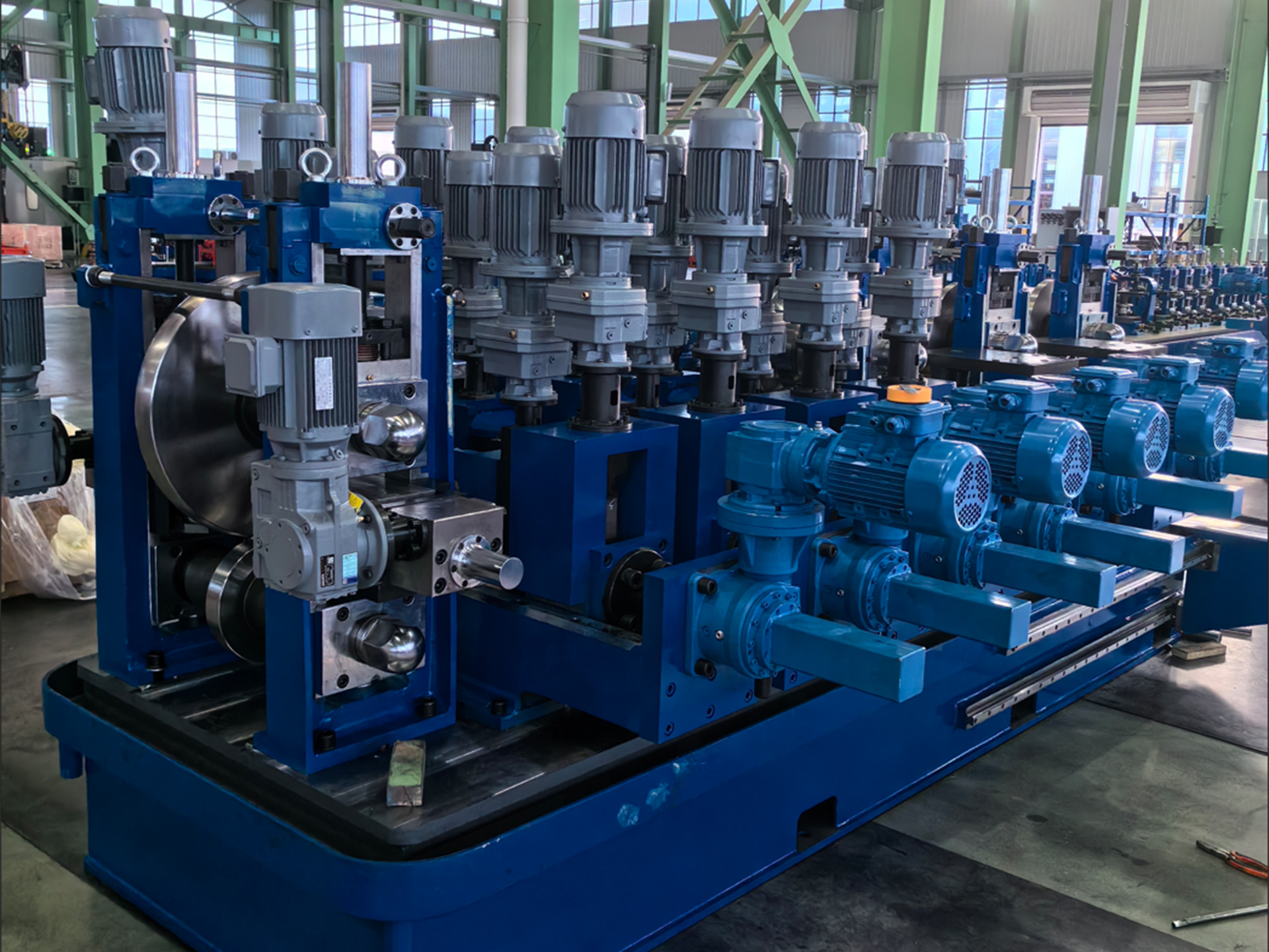 整条焊管线生产线实现了由交流电机远程控制或PLC伺服电机控制的高自动化辊位调整。